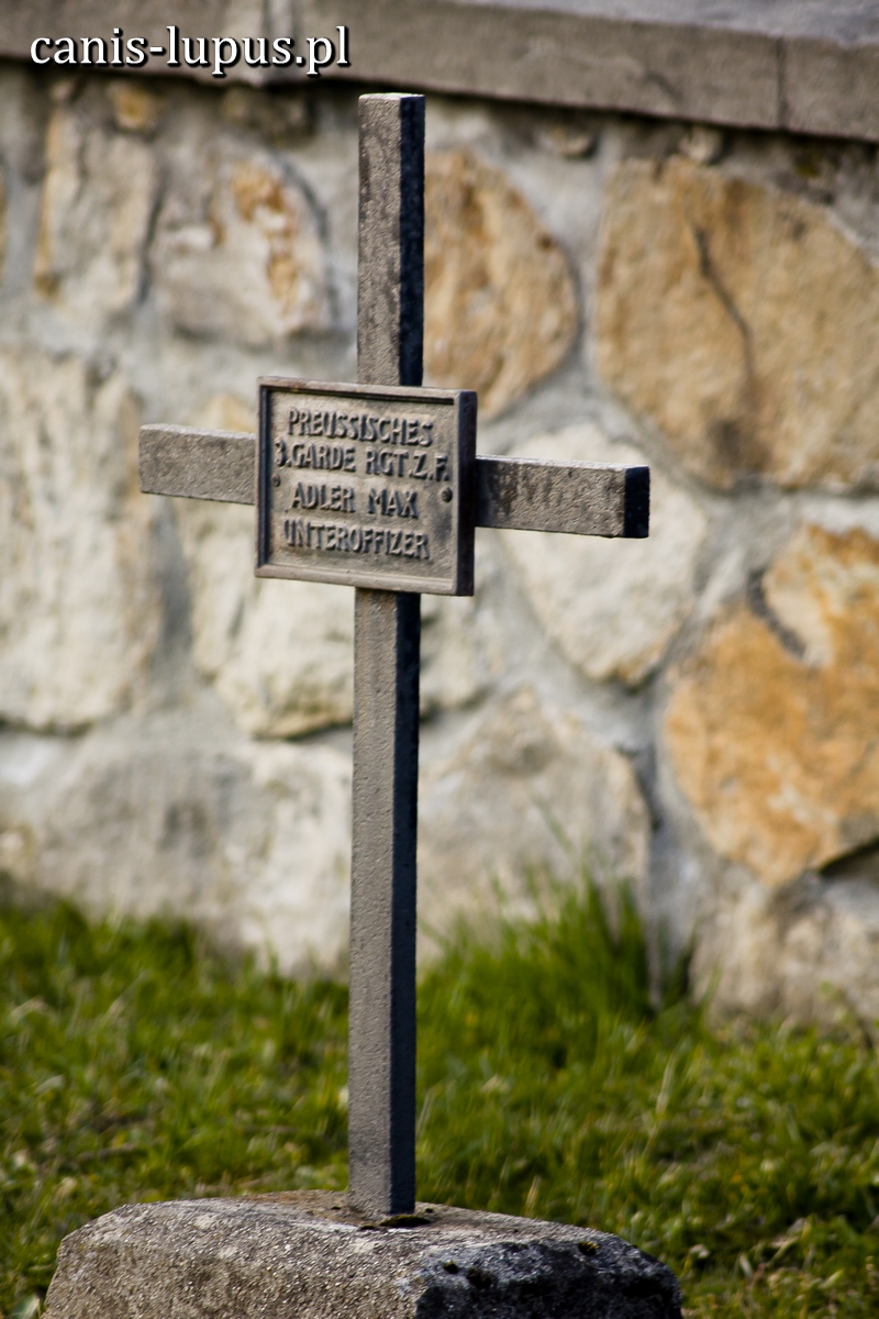 U stóp kapliczki znajduje się indywidualna mogiła oficera o nazwisku Fritz Hoppe. Wejście stanowi kuta furtka pomiędzy dwoma filarami. Całość otacza niewysoki mur z piaskowca, po bokach furtki ozdobiony dwoma kutymi elementami. Cmentarz zachował się stosunkowo dobrze. Jedynie mur był spękany, z tyłu nosił ślady niefachowych napraw.