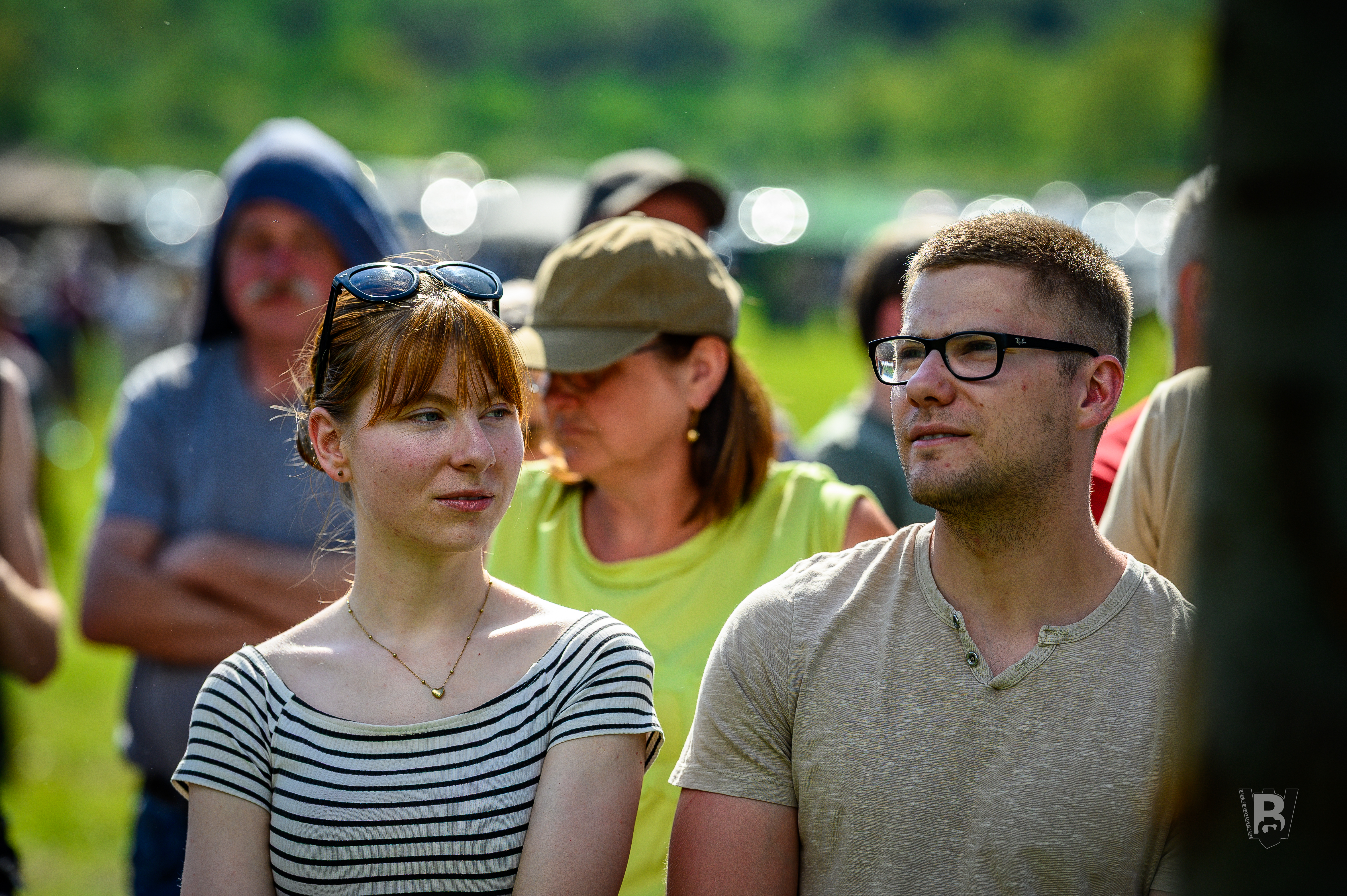 Szczególnym momentem był przelot aeroplanu z epoki, który majestatycznie przemknął nad polem bitwy, dodając wydarzeniu spektakularnego charakteru. Maszyna nie tylko przelatywała nad rekonstrukcją, ale także symbolicznie „zrzucała bomby”, co spotęgowało dramatyzm sceny. W moim kadrze udało się uchwycić tę chwilę, gdy sylwetka samolotu przecięła niebo nad walczącymi oddziałami, a eksplozje w polu podkreślały grozę wojennego teatru.
