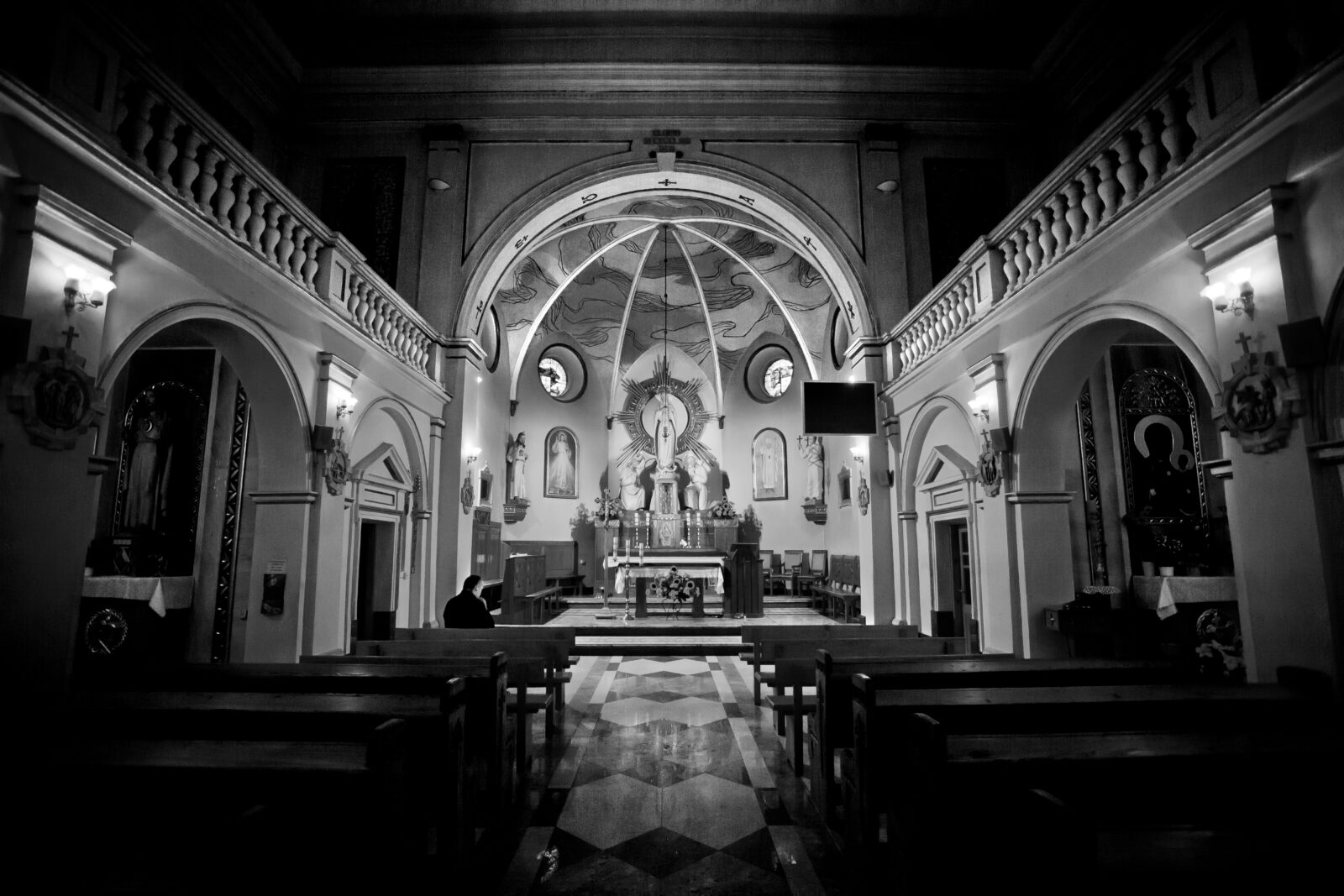 Ważną częścią mojego „muzycznego dojrzewania”, które z czasem przeplatało się z tym chórem, były także oazy. Z tamtych lat szczególnie mocno pamiętam ks. Łukasza Mariuszyca – z czasów, kiedy był jeszcze animatorem muzycznym. Byliśmy wtedy w podobnym rytmie: młodzi, zaangażowani, trochę niecierpliwi, ale uczciwi w tym, co robimy. To było granie i śpiewanie, które nie polegało na popisie, tylko na prowadzeniu ludzi. Na dawaniu im oparcia. Czasem na ratowaniu sytuacji, kiedy coś „nie idzie”. To jest szkoła, której się nie zdobywa na wykładach – tylko w praktyce, wśród młodzieży, w drodze, w śpiewie. Łukasz później pojawił się w Kościółku jako wikariusz. Wtedy też, próbowałem w czuwania modlitewne. Wyszło jak wyszło, ale coś zostało. Zdjęcie, które towarzyszy moim myślom niejednokrotnie. Towarzyszyć też będzie na mojej wystawie, bo to jedno z ważniejszych w moim „dorobku”.